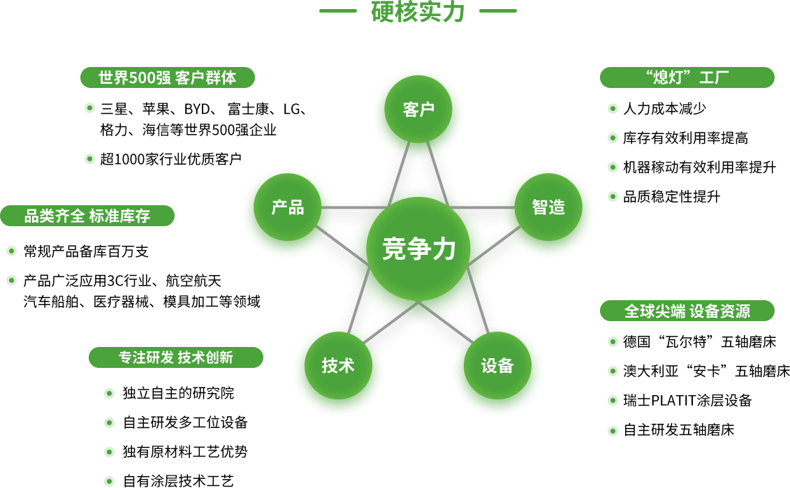 富兰地公司,自2012年创立以来,迅速崛起为一家集自主研发、生产与销售高精密切削工具于一体的“国家级高新技术企业”。公司配备全套进口高精密自动化设备,并拥有近百项国家专利,是华为、苹果、三星、比亚迪、富士康等全球顶尖企业的核心供应商。